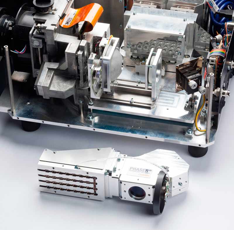 Die OSRAM Phaserlicht Technik hingegen setzt auf eine blaue Laserdiode als einzige Lichtquelle. Deren Licht wird auf ein sogenanntes Phosphor-Wheel gerichtet, welches mit Leuchtmitteln in den Farben Rot, Gelb und Grün beschichtet ist. Da der Laser bereits blau ist, ist für diese Farbe kein entsprechendendes Leuchtmittel nötig. Die für die Projektion notwendigen Farben werden nacheinander durch die Drehung des Rades erzeugt. Dieses dreht sich jedoch so schnell, dass für das menschliche Auge ein einheitliches Bild entsteht. Auf diese Art und Weise lässt sich jede beliebige Farbe erzeugen.