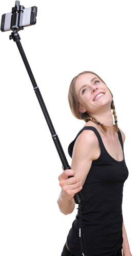 - Der Selfie Stick ausgezogen und in Action (Quelle: Rollei)