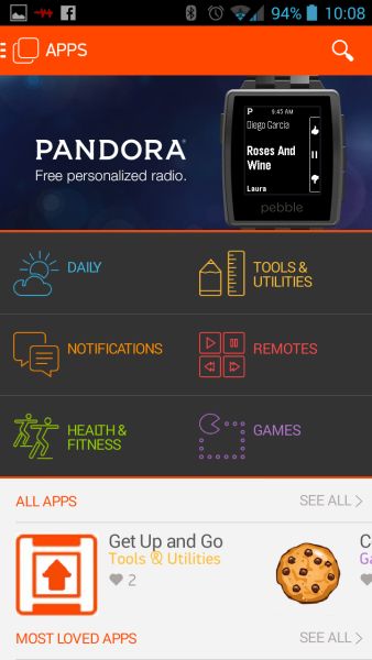 Das Angebot verfügbarer Apps für die Pebble Smartwatch ist schon jetzt sehr groß. Der Pebble App Store ist gut gefüllt. Für fast jede Aufgabe findet sich im Grunde eine passende App. Wem das Design des Ziffernblattes nicht mehr gefällt, kann aus einer großen Auswahl an Watchfaces eine heraussuchen, die besser gefällt. Das Angebot reicht hier von normalen Zeiger-Ziffernblättern bis zu exotischen Watchfaces mit Binäranzeige der Uhrzeit.