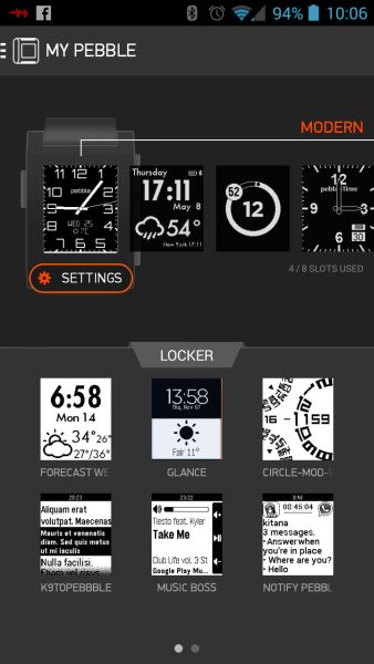 Das Angebot verfügbarer Apps für die Pebble Smartwatch ist schon jetzt sehr groß. Der Pebble App Store ist gut gefüllt. Für fast jede Aufgabe findet sich im Grunde eine passende App. Wem das Design des Ziffernblattes nicht mehr gefällt, kann aus einer großen Auswahl an Watchfaces eine heraussuchen, die besser gefällt. Das Angebot reicht hier von normalen Zeiger-Ziffernblättern bis zu exotischen Watchfaces mit Binäranzeige der Uhrzeit.