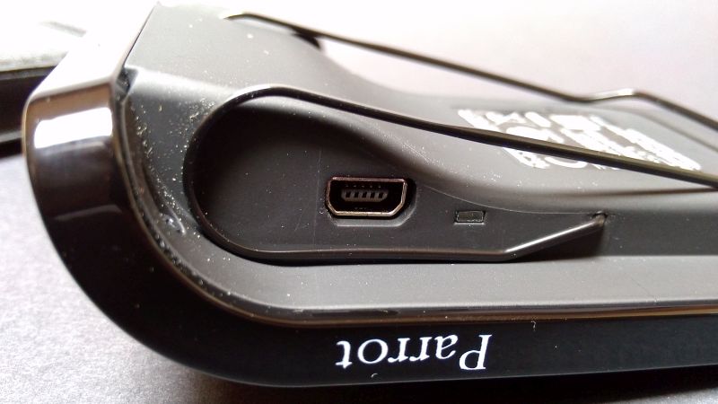Ist der Akku leer, kann er in knapp dreieinhalb Stunden wieder aufgeladen werden. Ein langes Mini-USB Kabel nebst Adapter für den Zigarettenanzünder wird mitgeliefert. Die entsprechende Mini-USB Buchse befindet sich auf der Seite des Minikit+. Wen das Kabel nicht stört, der kann das Minikit+ auch während der Fahrt nutzen. Das mitgelieferte Kabel ist lang genug, um es vom Zigarettenanzünder, über den Innenspiegel zum Minikit+ an der Sonnenblende zu legen.
