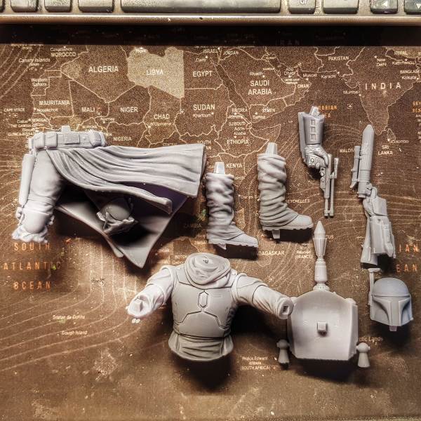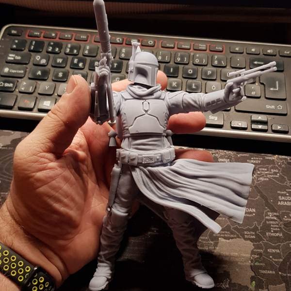 Hier mal ein Beispiel für eine größere Figur aus dem 3D Drucker, die ich gerade bearbeite. Hierbei handelt es sich um ein Modell von Boba Fett in der Version aus der aktuellen Serie „The Book of Boba Fett“